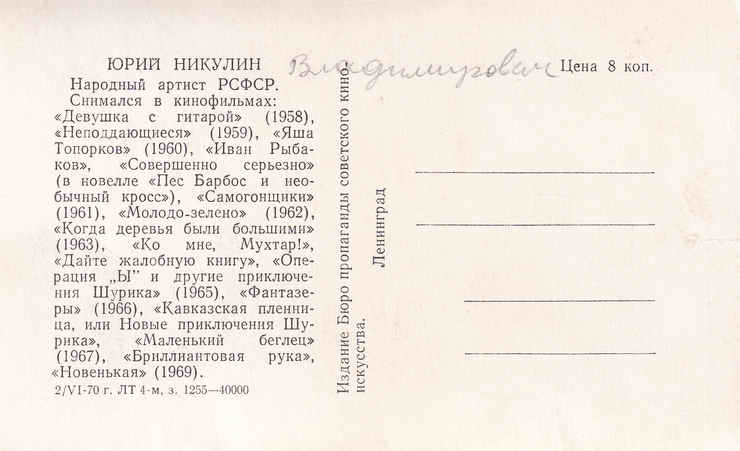 Открытка. 1970 год.