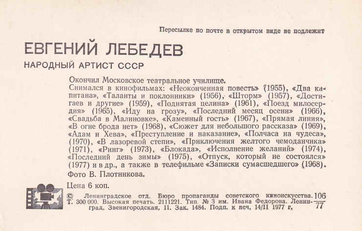 Открытка. 1977 год.