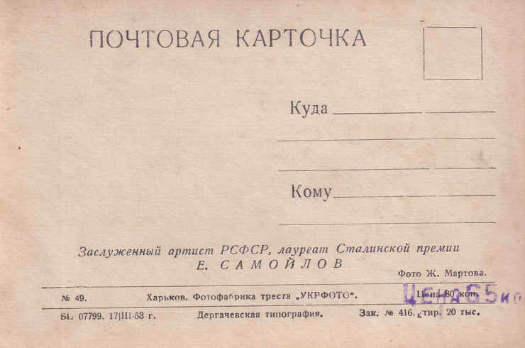 Открытка. 1953 год.