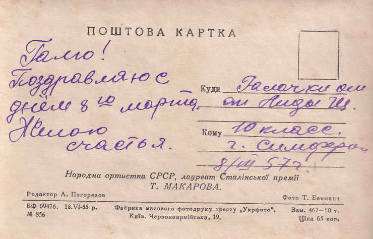 Открытка. 1955 год.