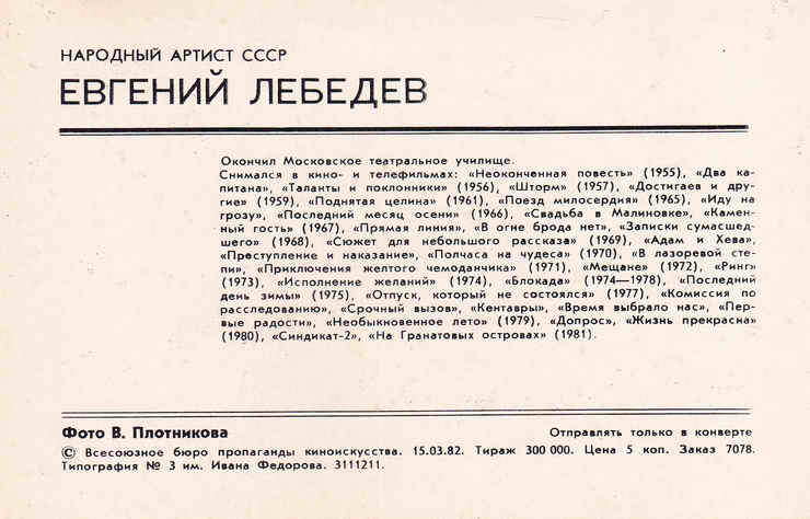 Открытка. 1982 год.
