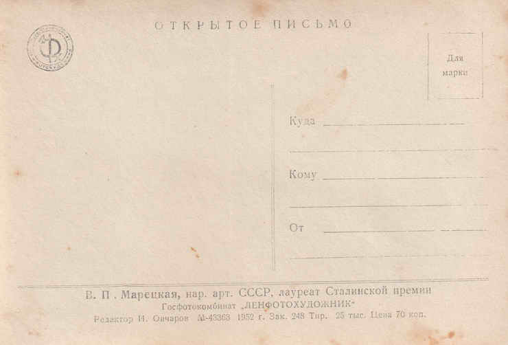 Открытка. 1952 год.