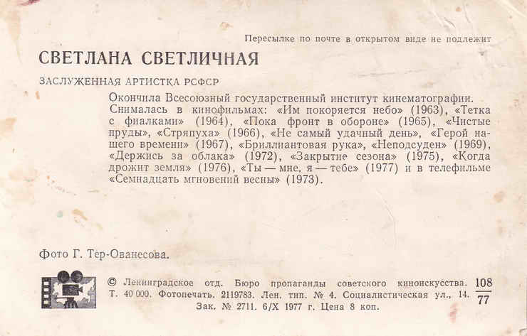 Открытка. 1977 год.
