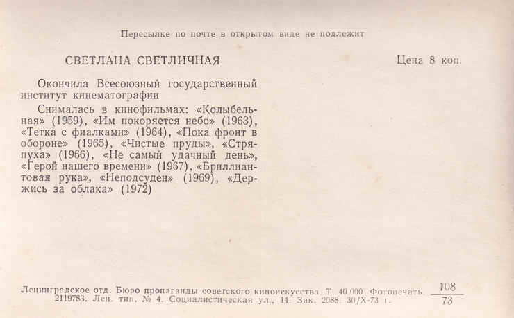 Открытка. 1973 год.
