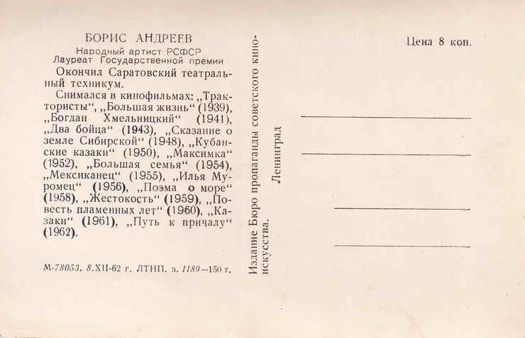 Открытка. 1962 год.