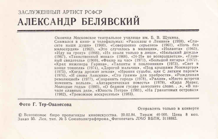 Открытка. 1984 год.
