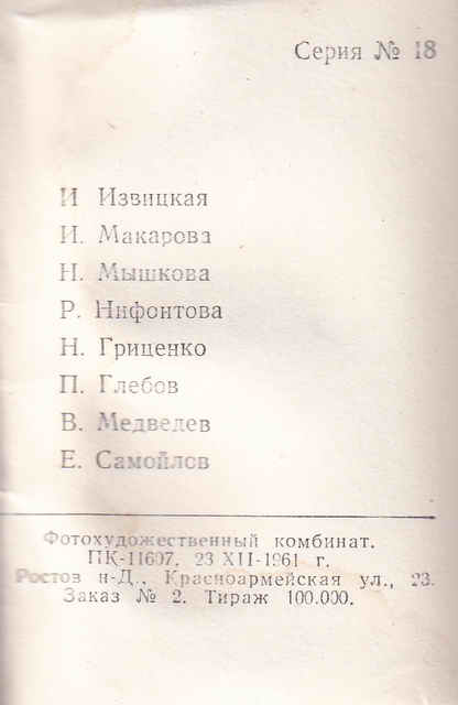 МиниОткрытки. 1961 год.