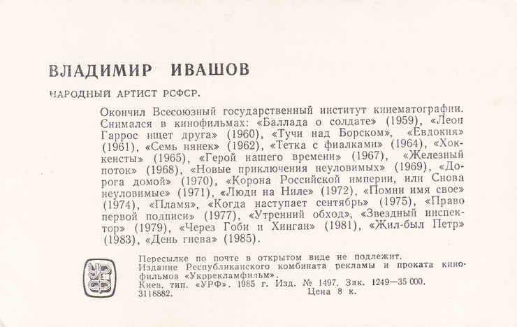 Открытка. 1985 год.
