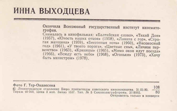 Открытка. 1980 год.