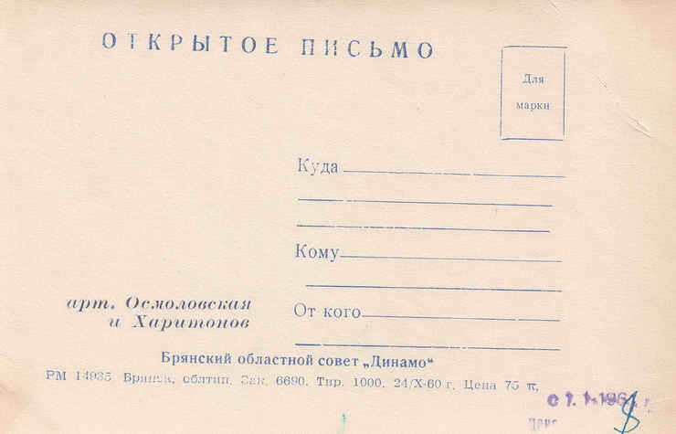 Открытка. 1960 год.