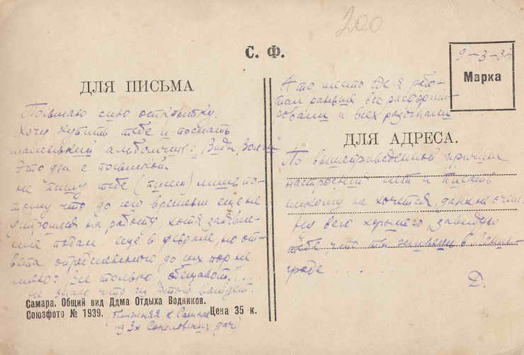 Открытка. 1934 год.